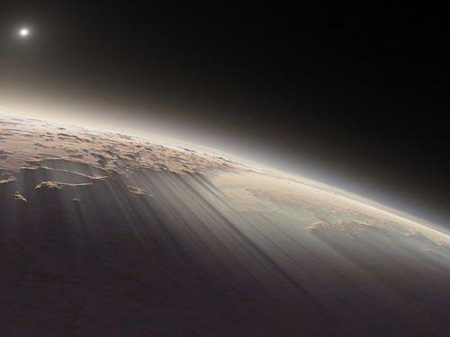 | Щодо другої фотки - щось не віриться... Атмосфера у Марса тонша за земну, а на фото - прямо декілька десятків кілометрів! По спогадам космонавтів, атмосфера Землі - дуже тоненька. По першим фото - гра світа й тіні. А то вже бачили фото з бомбардувальником часів 2 СВ на Місяці у кратері діаметром декілька км. Причому крила бомбардувальника дорівнюють діаметру кратера.